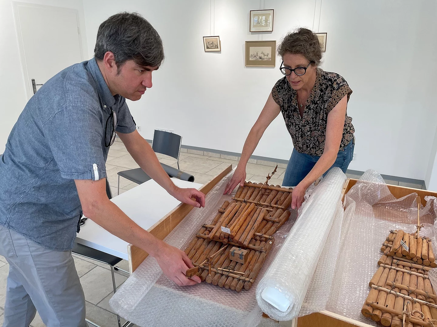 Zusammen mit seiner Wolfratshauser Kollegin packte er die beiden Modelle vorsichtig ein, um sie unversehrt nach Ismaning zu bringen. Außerdem mit im Gepäck zwei historische Dokumente von Wolfratshauser Flößern, darunter ein Reisedokument von 1850 für die Reise ins Ausland.